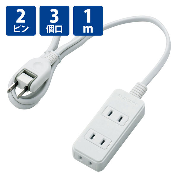 延長コード 電源タップ 1m 2ピン コンセント 3個口 ほこり防止シャッター 白 T-ST02-22310WH エレコム 1個