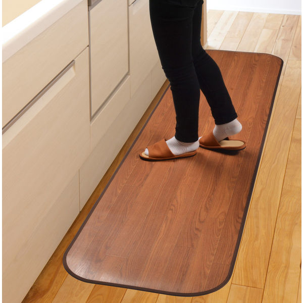 | 商品の特徴 | 消臭・抗菌・撥水の機能をあわせもつ家族みんなにやさしい高機能な木目調フリーマット。水分が染み込まない素材なので、汚れがちなキッチンでもサッとひと拭きできれいに。水まわりの掃除が簡単で楽になるようサポート。さらにフローリングのような深い溝がないのも掃除がしやすいポイントです。4層構造による厚み約1.8mm(縁を除く)でほどよいクッション性があります。滑り止めシート4枚付きだからズレ対策も安心です。 | ||