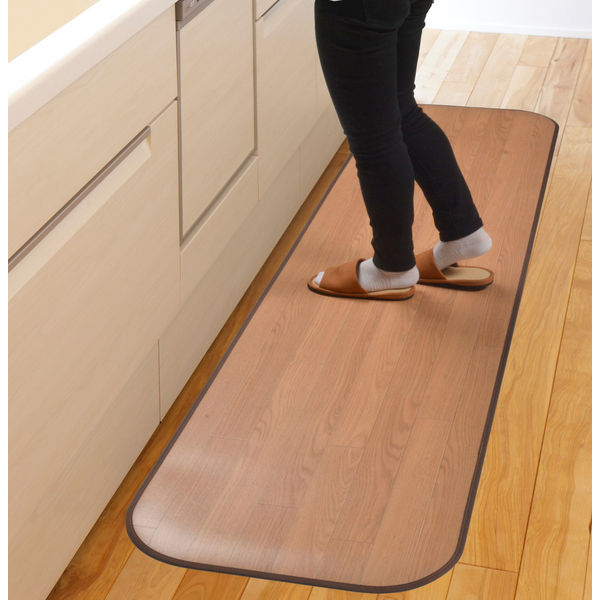 | 商品の特徴 | 消臭・抗菌・撥水の機能をあわせもつ家族みんなにやさしい高機能な木目調フリーマット。水分が染み込まない素材なので、汚れがちなキッチンでもサッとひと拭きできれいに。水まわりの掃除が簡単で楽になるようサポート。さらにフローリングのような深い溝がないのも掃除がしやすいポイントです。4層構造による厚み約1.8mm(縁を除く)でほどよいクッション性があります。滑り止めシート4枚付きだからズレ対策も安心です。 | ||