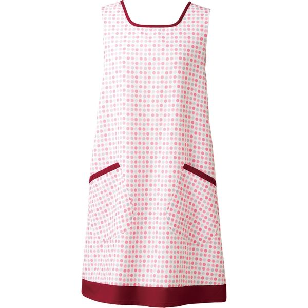 | 商品の特徴 | さっと脱ぎ着できる、かぶり型のエプロンです。お尻のラインが隠れる安心な丈。左脇のスナップボタンで着脱簡単!明るいドットにアクセントの斜めポケットがついています。ハリがありシワになりにくい薄手の織物素材を使用しています。 | ||