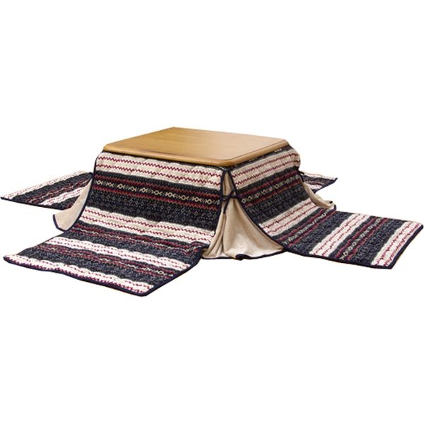 | 商品の特徴 | こたつで寝てしまうという方にピッタリのこたつ布団です。タレ部分を長く伸ばして使うこともできるので、横になってゆったりとくつろげます。表地には肌触りのよい、あったか素材の起毛生地を使用しています。裏地にはフランネルと呼ばれる、しっとりなめらかな肌触りのよい生地使用しています。省スペースタイプで四隅を結べば角が膨らまず、お部屋を広く使えます。薄手なので折りたたんでもかさばらず、コンパクトに収納できます。部分暖房のコタツは電気代もおトクです。 | ||