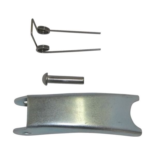 商品の特徴 ●重量フック バネ付(ラッチ付)の取り換え用ハズレ止め金具セットです。●板、バネ、リベットの三点セットです。