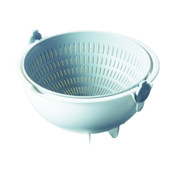 | 商品の特徴 | ●ボウルとざるが一体型になっており、取り外して別々でも使えます。●ホイールを軸にボウルの中でざるがスピン(回転)し、傾けるだけで簡単に水切りができます。●さらに、白いボウルを180度回転させてざるのフタにして、両手で押さえて上下に振ればしっかりと水切りできます。●ポリプロピレン●食品衛生法適合品 | ||