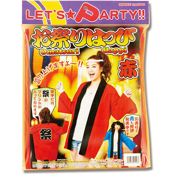 商品の特徴 お祭りイベントに最適なハッピです!赤色で、後ろは注目度抜群の「祭」のプリント。