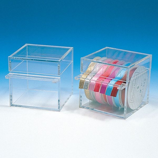 リボンのカット売りに便利なアクリル製の什器です。