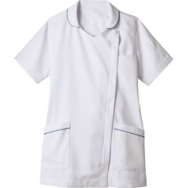 AITOZ(アイトス) パイピングチュニック(女性用) ナースジャケット 医療白衣 半袖 ホワイト×サックス 6L 861368-02(直送品)