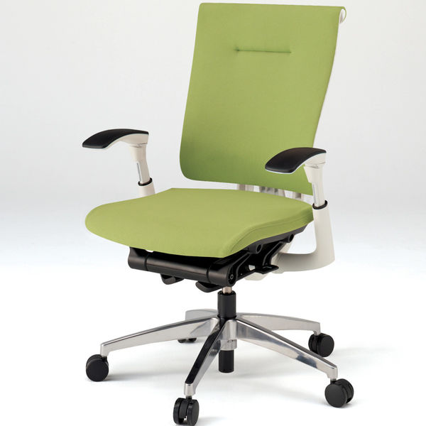【設置込】イトーキ セレーオ チェア ハイバック クロス 可動肘付 アルミ脚 ホワイト×モスグリーン KF-587GS-ZWQ6 1台(直送品)