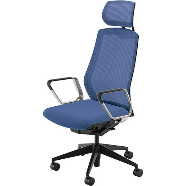 【組立設置込】内田洋行 セレッツァ/SA-760M-BS ARP肘付 ブラック/マリンブルー 5-356-6605 1脚(直送品)