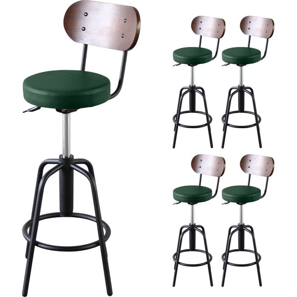 ネットフォース タム バーカウンターチェア スツール タムチェア 座面昇降 木製背もたれ付 モスグリーン NF-TAM-3S4-AW 1セット4脚入(直送品)