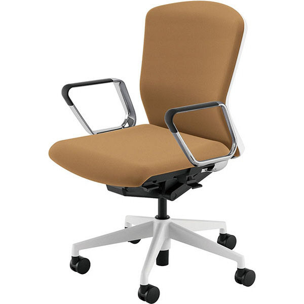 C683BW FSF7|オカムラ シルフィー ローバック 布張 白ボディ アルミ脚 可動肘 ベージュ 1脚(直送品)