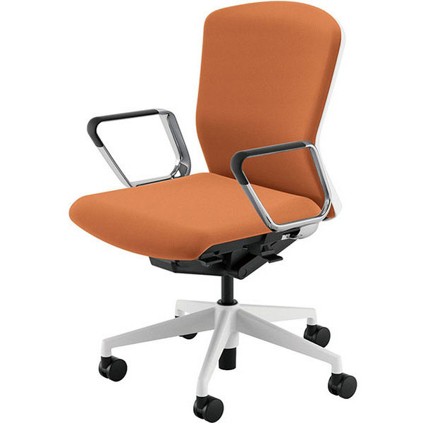C683BW FSG8|オカムラ シルフィー ローバック 布張 白ボディ アルミ脚 可動肘 オレンジ 1脚(直送品)