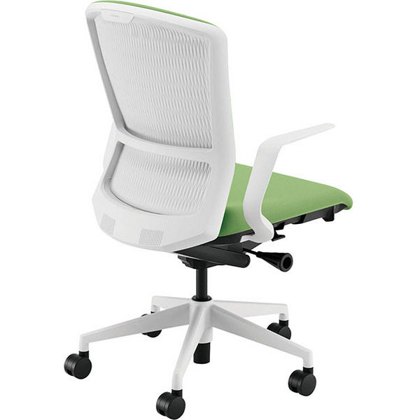 【組立設置込】内田洋行エルフィELA2-510P-WS PA樹脂バック ハイ L型肘ライムグリーン ホワイト/ライムグリーン5-354-3153 1脚(直送品)