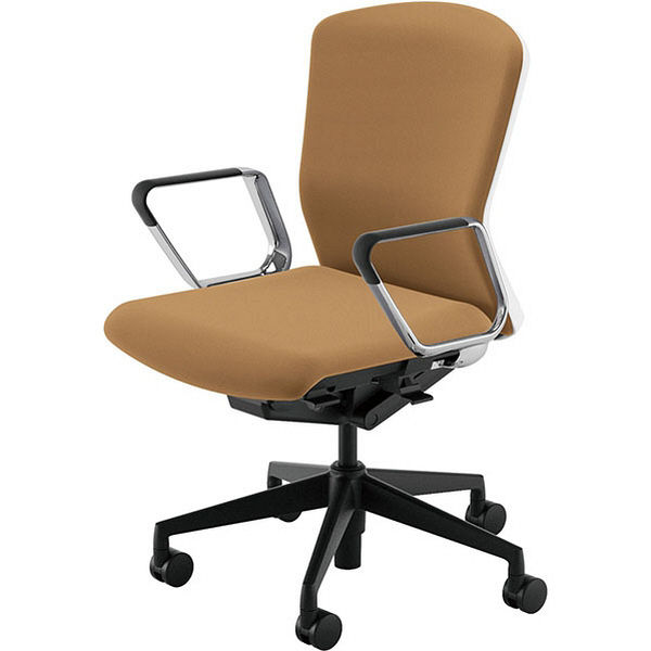 C683BW FSF7|オカムラ シルフィー ローバック 布張 白ボディ アルミ脚 可動肘 ベージュ 1脚(直送品)