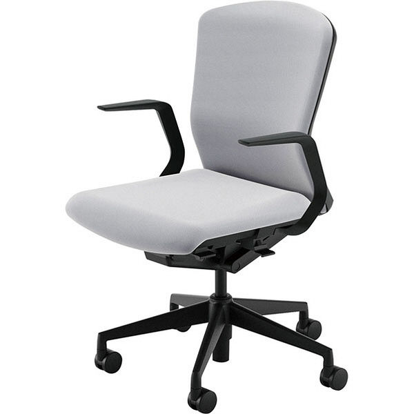【組立設置込】内田洋行エルフィELA2-315P-BS PU樹脂バック ミドルL型肘ホワイトグレイ ブラック/ホワイトグレイ5-355-0101 1脚(直送品)