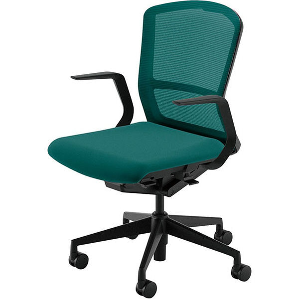 【組立設置込】内田洋行エルフィ/ELA2-315M-BS PUメッシュ ミドル L型肘Tグリーン ブラック/ティールグリーン5-355-0177 1脚(直送品)