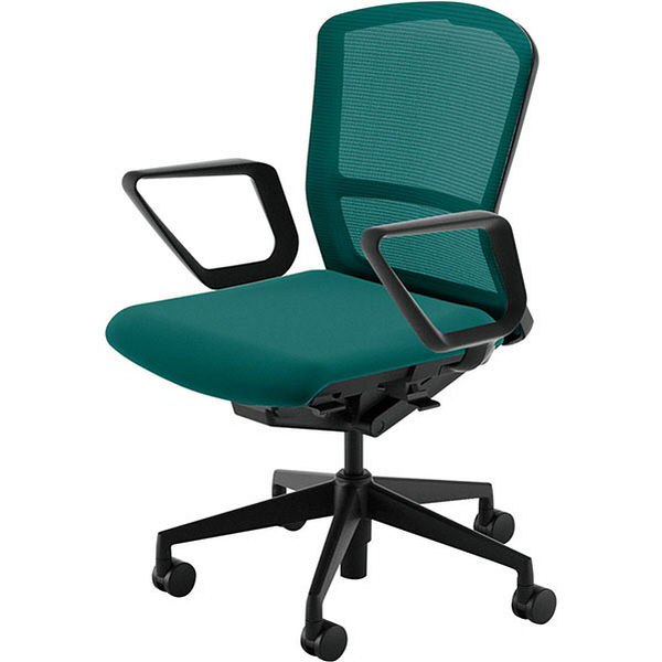 【組立設置込】内田洋行エルフィELA2-335M-BS PUメッシュ ミドル リング肘Tグリーン ブラック/ティールグリーン5-355-0377 1脚(直送品)