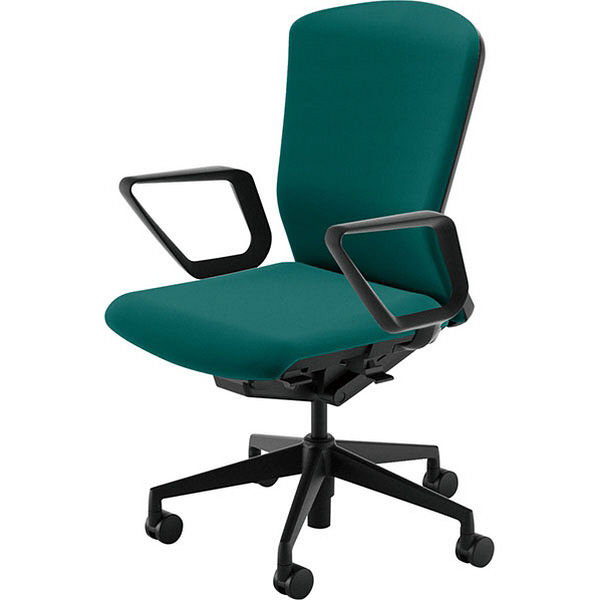 【組立設置込】内田洋行エルフィELA2-535P-BS PU樹脂バック ハイ リング肘Tグリーン ブラック/ティールグリーン5-355-1357 1脚(直送品)