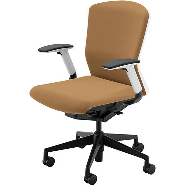【組立設置込】内田洋行エルフィELA2-345P-WSB PU樹脂バックミドルFアジャスタブル肘Sベージュ ホワイト/サンドベージュ5-355-44 (直送品)
