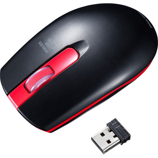 レーザーセンサー搭載で超省電力なワイヤレスレーザーマウス。レッド。