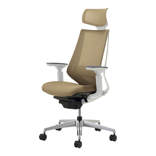 【組立設置込】コクヨ デュオラ ヘッドレスト付 可動肘 ランバーサポート有 アルミ脚 メッシュ カーペット用 ホワイト×ソフトベージュ 1脚(直送品)