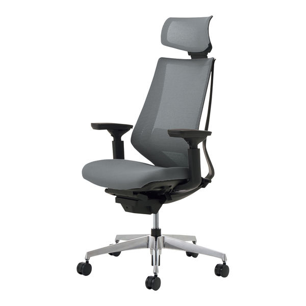 【組立設置込】コクヨ デュオラ ヘッドレスト付 可動肘 ランバーサポート有 アルミ脚 メッシュ カーペット用 ブラック×ソフトグレー 1脚(直送品)
