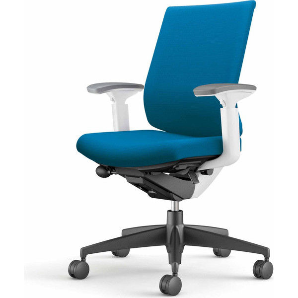 【組立設置込】コクヨ ウィザード3 ローバック 可動肘 樹脂脚 布張り カーペット用 ホワイト×ブラック×ターコイズ 1脚(直送品)