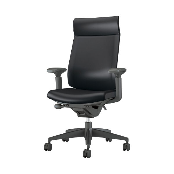 【組立設置込】コクヨ ウィザード3 ミドルマネージメント 可動肘 樹脂脚 レザー カーペット用 ブラック×ブラック×ブラック 1脚(直送品)