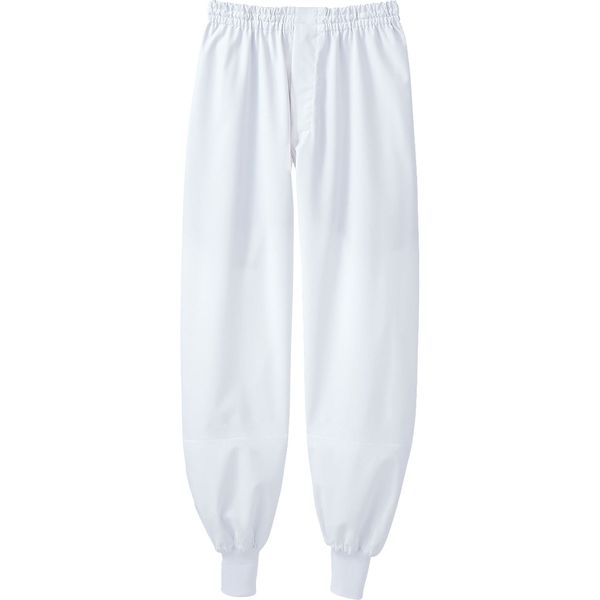 住商モンブランの工場白衣 パンツ、男女兼用、ホワイト、総ゴム+ひも付、HACCP、裏地付、裾ネット付、ECO商品