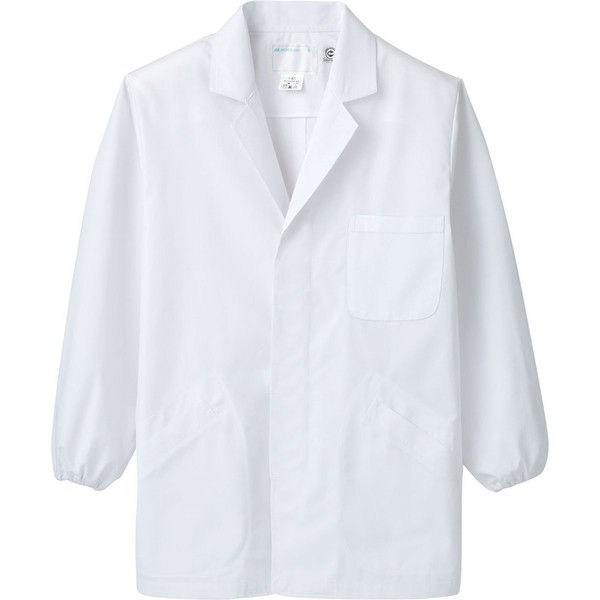 住商モンブランの調理衣、メンズ用長袖、ホワイト、襟付、ゴム付、比翼タイプ、ECO商品