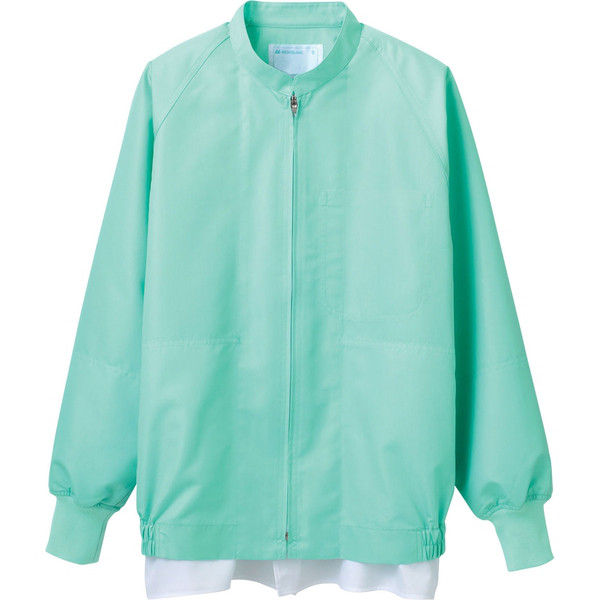 住商モンブランの工場白衣 ジャンパー、男女兼用、長袖、グリーン、内ポケット付、腰ネット付、袖口ネット、HACCP