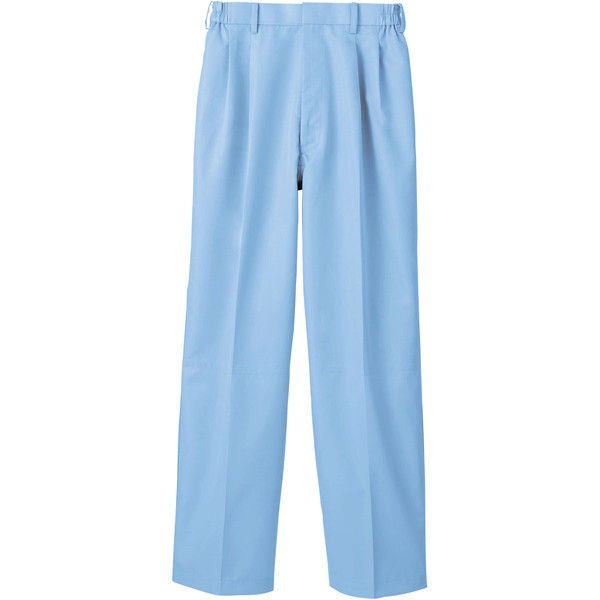 住商モンブランの工場白衣 パンツ、男女兼用、ブルー、ツータック+両脇ゴム、裏地付、裾口ネット