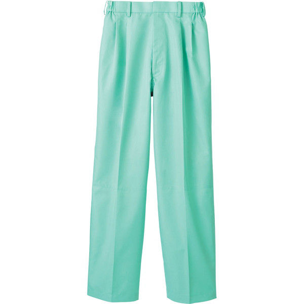 住商モンブランの工場白衣 パンツ、男女兼用、グリーン、ツータック+両脇ゴム、裏地付、裾口ネット