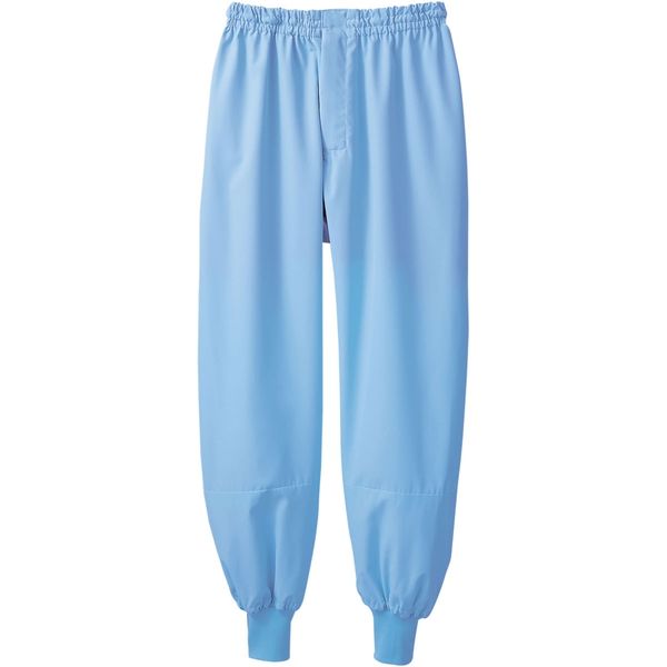 住商モンブランの工場白衣 パンツ、男女兼用、ブルー、総ゴム+ひも付、裏地付、裾口ネット、裾口フライス