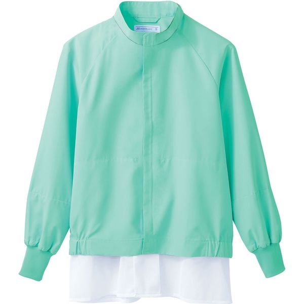 住商モンブランの工場白衣 ジャンパー、男女兼用、長袖、グリーン、袖口ネット付、腰ネット付