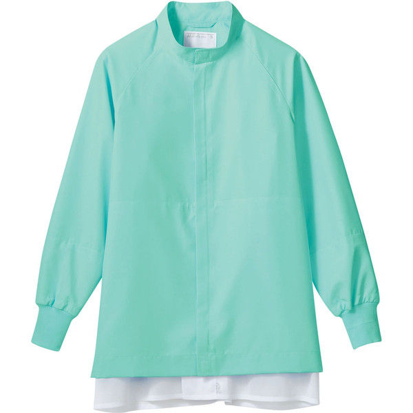 住商モンブランの工場白衣 ブルゾン、男女兼用、長袖、グリーン、袖口ネット付、腰ネット付