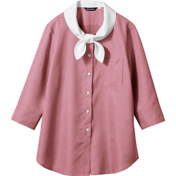住商モンブランの飲食・カフェ シャツ、レディス、7分袖、ワインチェック×ホワイト、クレリックタイプ