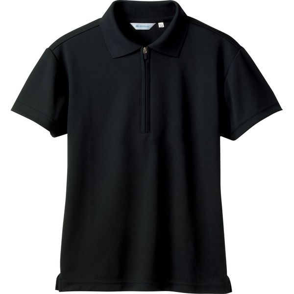 住商モンブランの調理用 ポロシャツ、男女兼用半袖、ブラック、ファスナー付、袖口ネット付