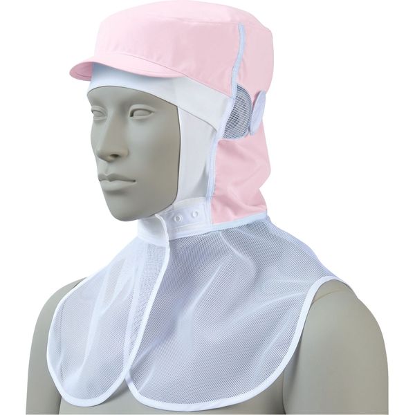 住商モンブランの工場白衣 キャップ ケープ付、男女兼用、ゴム式、ピンク、吸汗ニット、マスク留め付、メガネ留め付、ECO商品