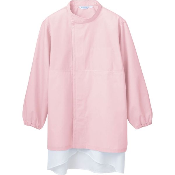 住商モンブランの工場白衣 ブルゾン、男女兼用、長袖、ピンク、袖ネット、腰ネット付、サイドファスナー、内ポケット付