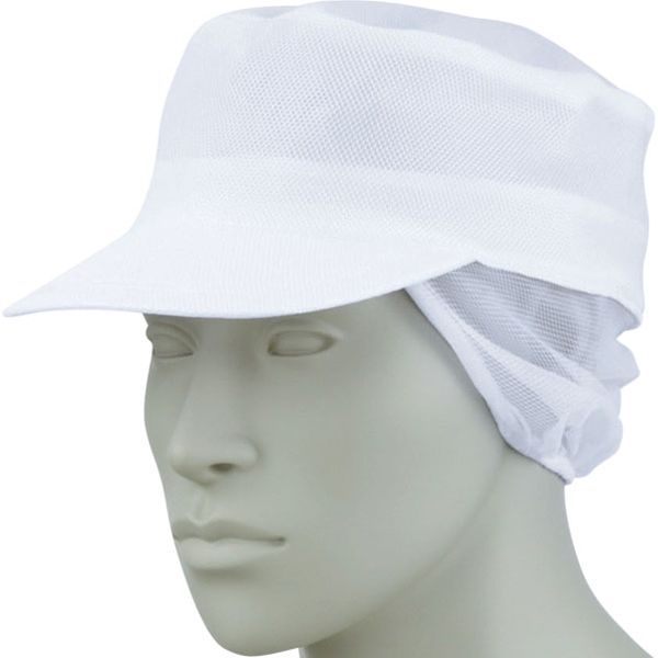 住商モンブランの工場白衣 キャップ メッシュ丸天帽子たれ付、男女兼用、ホワイト