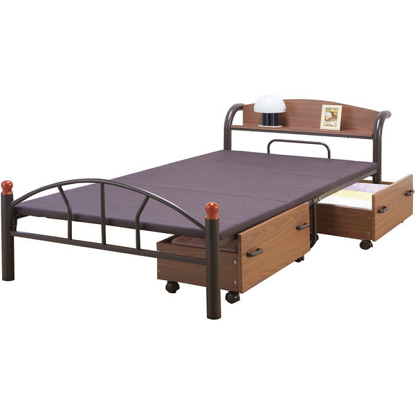 ファミリー・ライフ 木製棚・引出し付きパイプベッド シングル ブラウン 0269130(直送品)
