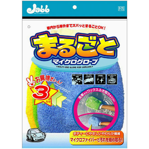| 商品の特徴 | 極細繊維のマイクロファイバーを使いやすくグローブ化!車のお手入れに便利な3個セットです。 | ||