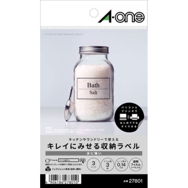スリーエム ジャパン キレイにみせる収納ラベル 水に強い 透明フィルム ノーカット 27801(取寄品)