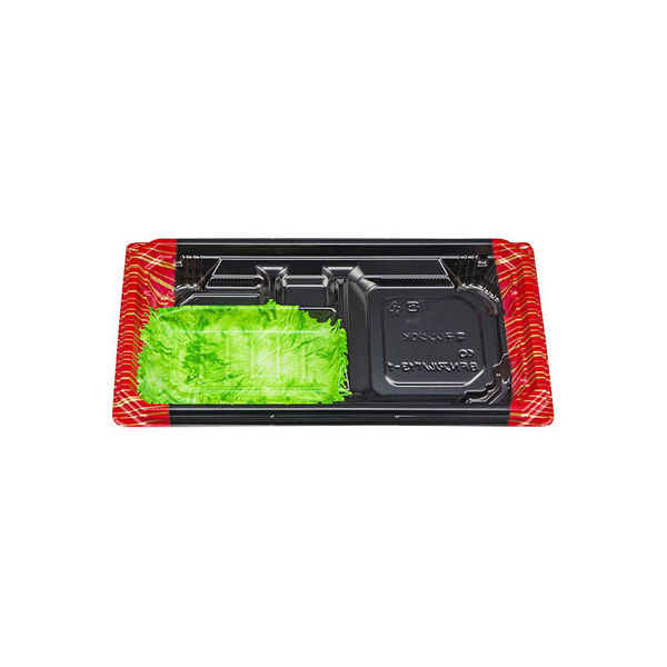 | 商品の特徴 | 従来にない嵌合性を実現した弁当容器。商品持ち上げ時も安心!本体タブをおさえながら蓋タブを軽く持ち上げると、パカっと簡単に開きます。テープいらずで、コスト削減と作業性に貢献。かんごうフタは別売り。 | ||