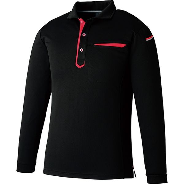 【ワークウェア・作業用ポロシャツ】小倉屋 KNGシリーズ 切りポケ長袖ポロ(ペン差し) ブラック 3685-80-5L 1枚(直送品)