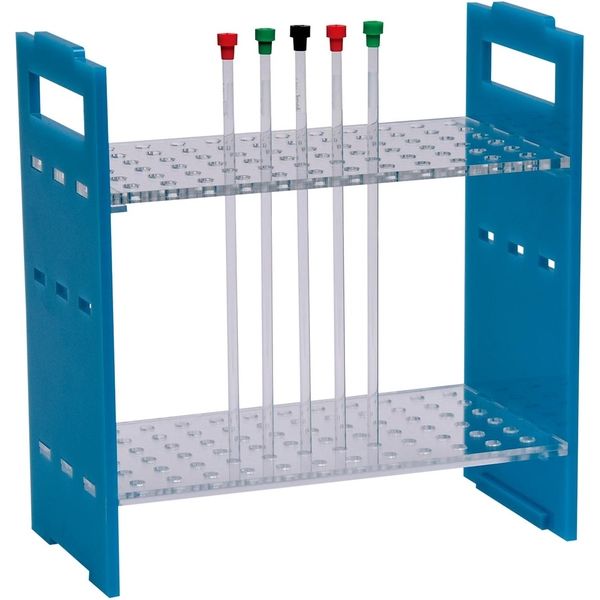 ●アクリル製で磁力の影響を受けないNMRチューブスタンドです。 ●棚板の位置を変えることで、異なる長さのNMR管に対応できます。