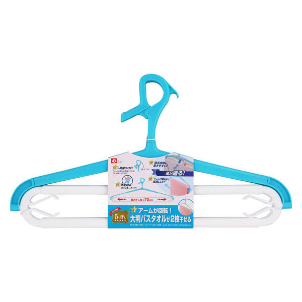 ダブル 大判 バスタオル・トレーナー ハンガー2本組。こだわり機能、特別「5つ干し」洗濯ハンガーです。最大干し幅70cmで大判バスタオルを2枚同時に干すことができます。