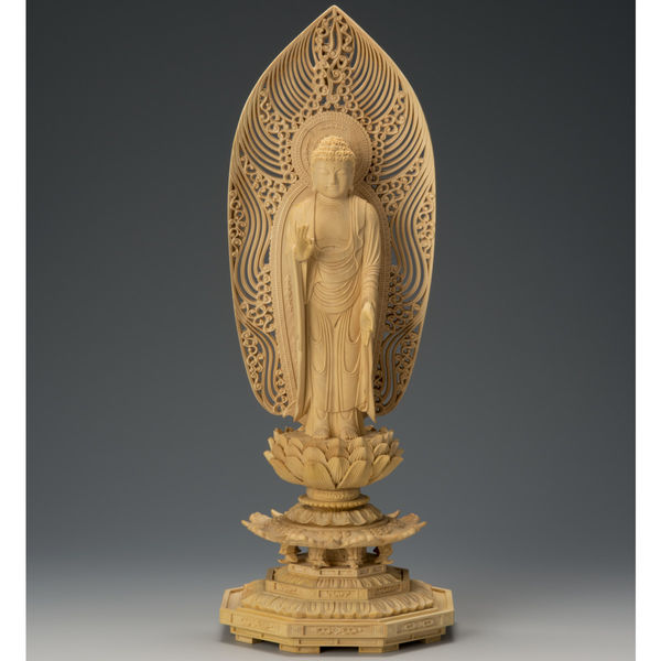 商品の特徴 浄土宗のご本尊です。ご本尊は菩提寺の宗派によってそれぞれ異なりますので、宗派に合わせてお選び下さい。※ 手彫り仕上げのため、一体一体仕上がりや木目、寸法が多少異なる場合がありますのでご了承願います。