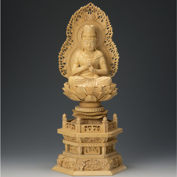 | 商品の特徴 | 真言宗のご本尊です。ご本尊は菩提寺の宗派によってそれぞれ異なりますので、宗派に合わせてお選び下さい。※金泥仕様は金を溶かして筆で書いていく技法。※ 手彫り仕上げのため、一体一体仕上がりや木目、寸法が多少異なる場合がありますのでご了承願います。 | ||