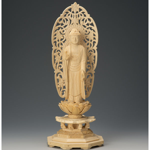 商品の特徴 浄土宗のご本尊です。ご本尊は菩提寺の宗派によってそれぞれ異なりますので、宗派に合わせてお選び下さい。※ 手彫り仕上げのため、一体一体仕上がりや木目、寸法が多少異なる場合がありますのでご了承願います。